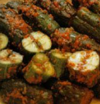 - Stuff each cucumber piece with the mixture. Place them neatly in a jar. Put the remaining stuffing on the them.