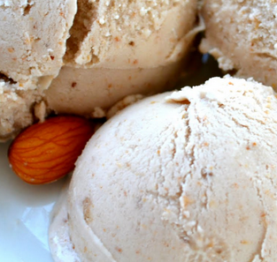 - Pound the almond into paste. Add milk and heavy cream, mix thoroughly together.
