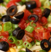 - Grate the cheddar and monterey jack cheeses and chop and drain tomatoes and green onions, with tops.