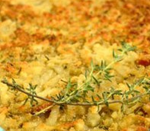 - Pour into a shallow baking dish and bake in a 350 pre-heated oven for 30-35 minutes.