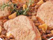 - Add beans and apples; toss. Spoon around meat.